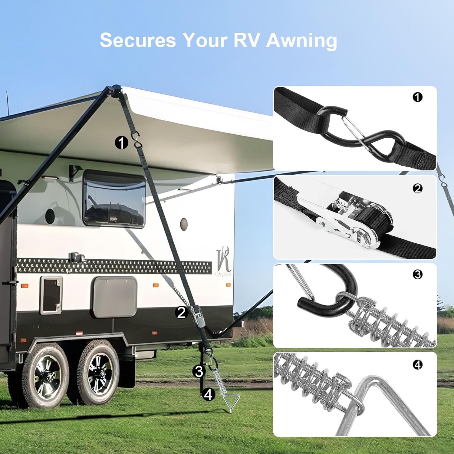 1 RV Awning Tie Down Kit + 1 RV Electric Tongue Jack Co