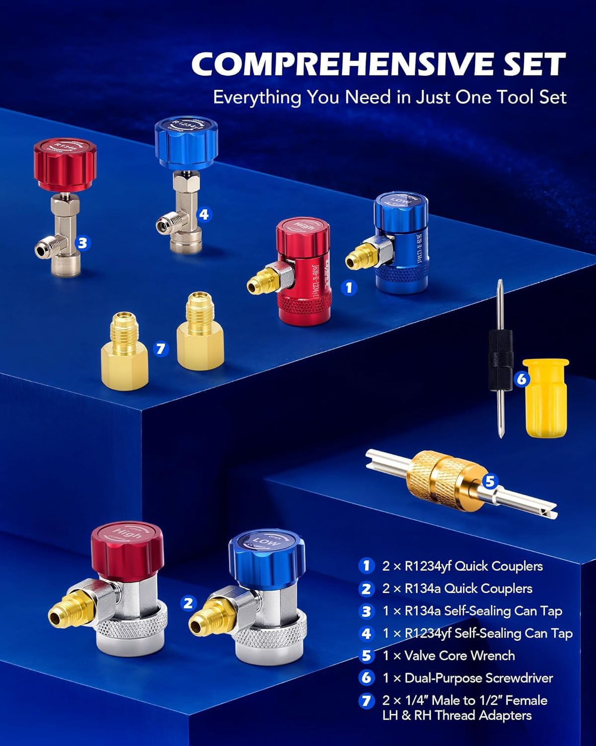 Orion Motor Tech 3.5 cfm 1/4 hp HVAC Single Stage Vacuum Pump for R12 R22 R134a R410a R1234yf & 4 Way Manifold Gauge Set for R1234yf R134a R404a Refrigerant, Bundle