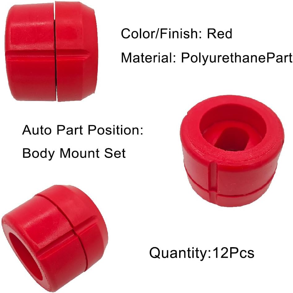 Our 7-108 Polyurethane Body Mount Bushing Kit delivers a factory-fresh ride for your 1981-1987 Chevy/GMC pickup or SUV. Compatible Models: For Chevy C10, C20, K10, K20, K30 (1981-1987) For GMC C1500, C2500, K1500, K2500 (1981-1987) Function: Zero Cab Sag: Maintain proper door/fender gaps Vibration Control: 68% less cabin noise vs. worn mounts Precision Handling: Tighten steering response & cornering Kit Includes: 12x Body Mount Bushings