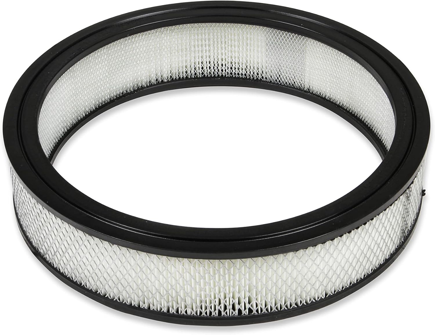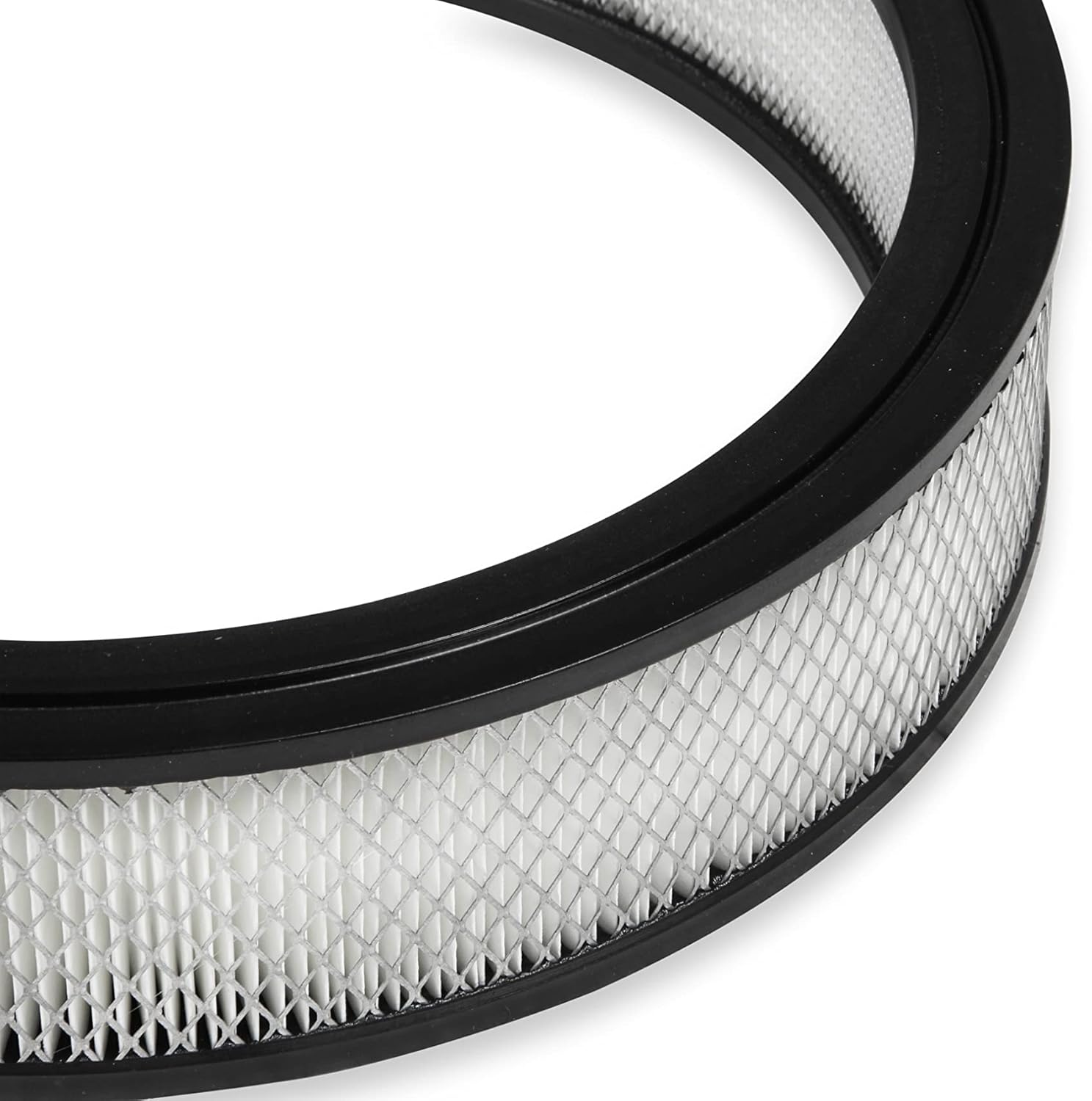 Mr. Gasket Flat Black Easy-Flow Air Cleaners help customize your engine compartment and give you that stealth look. Designed to fit all single 2-, 3-, and 4-barrel carburetors with 5.125-inch necks, these competition air cleaners are ideal for race applications and high-performance street use. They're 14 inches in diameter, 3 inches tall, include a paper element, and have a flat, smooth top and internal baffles.