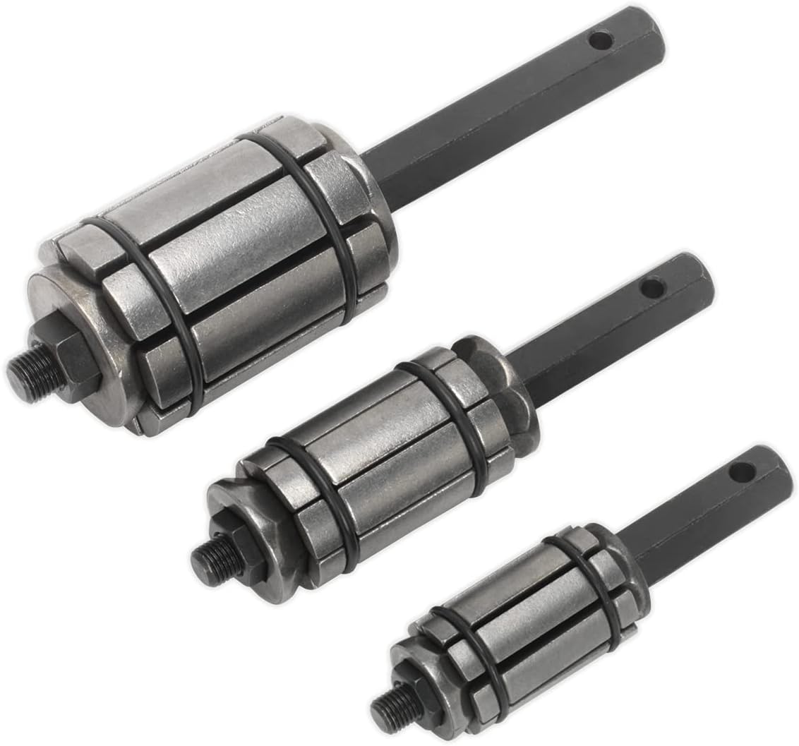 Product Description Sealey are one of Europe's largest tool and equipment brands with nearly 8000 products available from its extensive catalogue. Sealeys products are backed by an excellent 12 month guarantee and their hand tools benefit from a lifetime warranty, giving purchasers added peace of mind. This family owned company have huge stocks and can deliver pretty much anywhere in the country the next day on a premium service. Sealey are big on service and their parts service is second to none. Currently with over 130,000 different parts in stock, Sealey can supply parts for all their products from a circlip to a compressor tank, generally from stock check Sealeys website for their on-line instructions and parts lists. Set Contains: Sealey VS1668 Exhaust Pipe Expander Set 3pc
