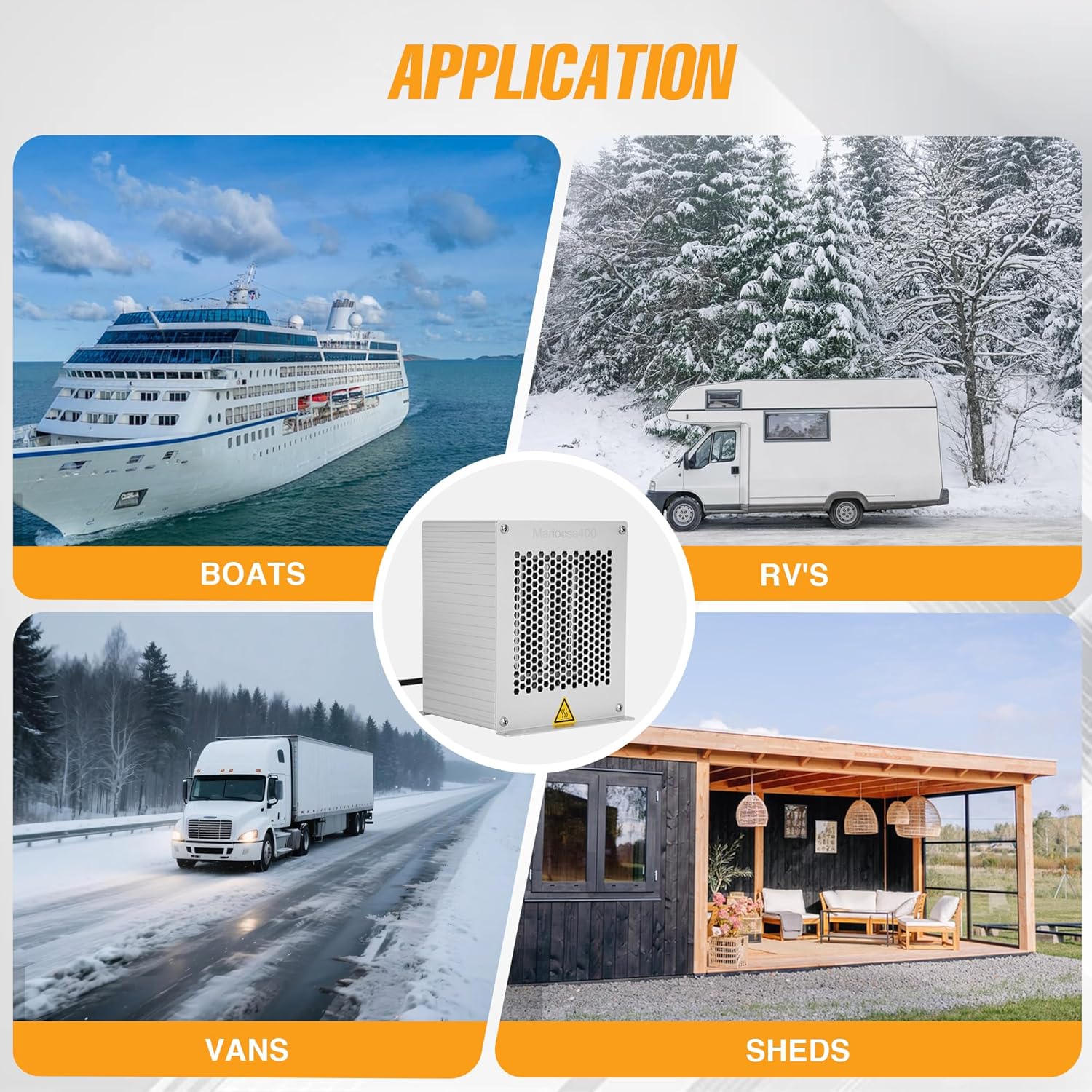| Included Components | 1 x 400W PTC Marine Engine Heater with 15ft Power Cord, 1 x Detailed Instruction Manual |
