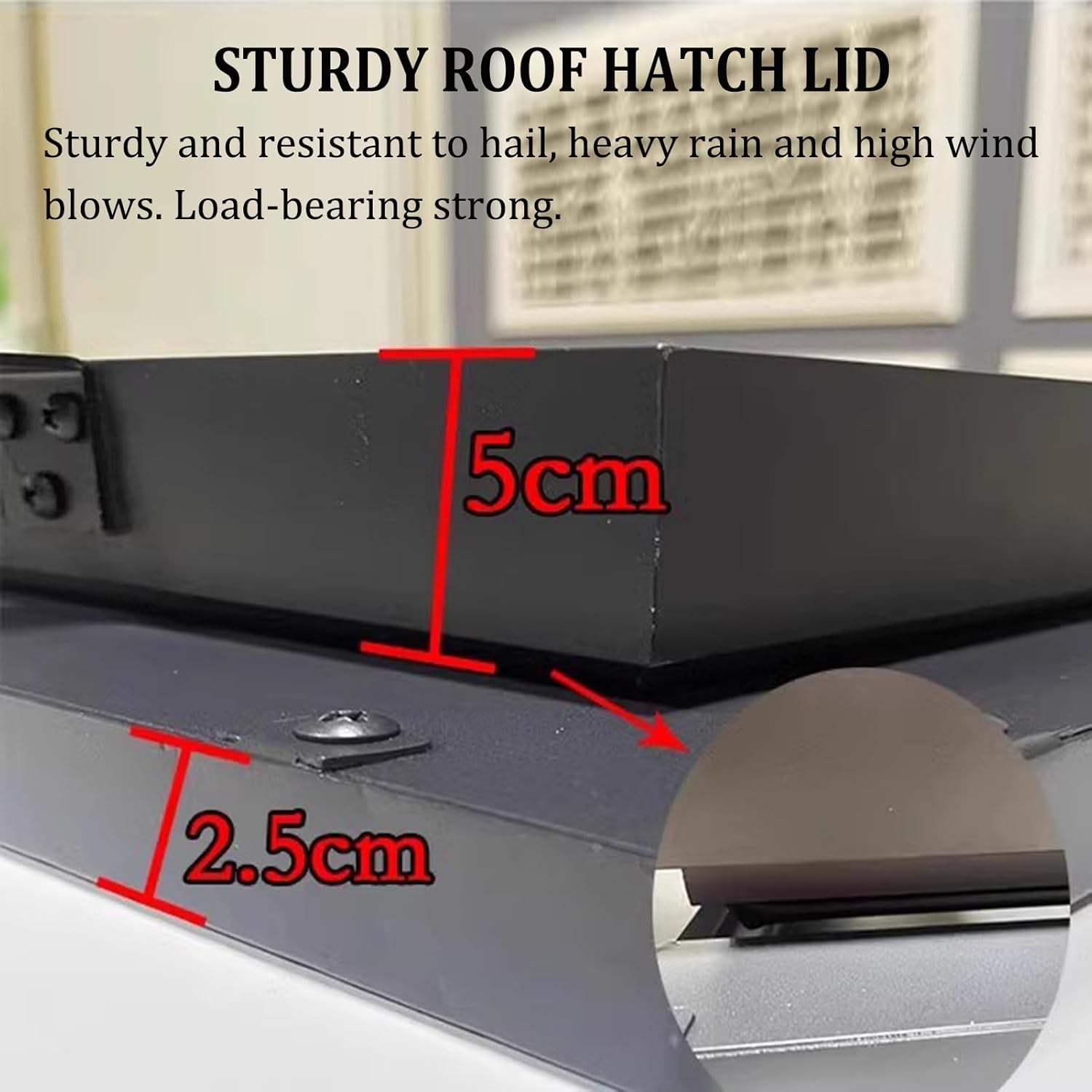 This galvanized steel access hatch provides convenient roof access, provide security and storm protection for multiple environments including attic exit or roof window, and moreSpecification:Material: Aluminum AlloySize: CustomizableBottom Frame Inner Diameter Size: 50cm, 55cm, 60 cm, 65 cm, 70 cm, 75 cm, 80 cm, 85 cm, 90 cm, 95 cm, 100 cmInner Size=Outside Size+12cm/4.7inFeatures:Pre drilled holes for easy installationSmooth Corners improve the safety of useSimply push the lid gently, and it will open slowlyPull handle design for easy opening and closingSupport to open the lid, the maximum angle is 90 degreesDoor Latch Design can secure the hatch and prevents break insSeal Strip can play a role in preventing wind, rain, Warmth and noise reductionPackage Contents:Roof Hatch x 1BoltsTips:Manual measurement products may have dimensions of a few centimeters of difference, please understand.There may be some differences between the image and the product due to display and lighting reasons, please refer to the actual product.