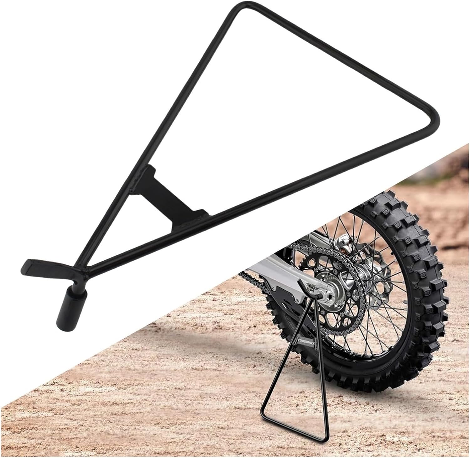 Features :The bike triangle side stand is made of heavy-duty steel and welded Compatible with the perfect angle and strong joints. The triangle will hold the weight of your bike easily without falling apart or letting you down. This stand is used by the pros.The triangle stand is an excellent solution to when you want to repair your dirtbike quickly, park it safely in off road conditions, or perform maintenance. The bike stand provides a wider base Compatible with your bike to lean on which makes the triangle stand more secure.The stand is compatible with most bikes and will three different sized holes 18mm, 14.5 mm, and 11mm diameters. The stand comes with a rubber end that prevents the stand from wiggling or falling out when rolling around.Eliminate the need of a kickstand that takes time to install and often doesn't hold. Unlike the traditional kickstand that requires installation and hardware, this triangle side stand doesn't require installation. Simply plug into the rear axle and voila!Specification:Condition: Color : BlackMaterial : IronPlacement on Vehicle : LeftFitment:Fits Compatible with Most of MotorcycleFits Axles With Inner Diameter of 18mm,14.5mm and 11mmPackage Includes:1 Piece Motorcycle Triangle KickstandNotes:Please kindly check your motorcycle's model and confirm this item is suitable Compatible with it before ordering.Due to the lighting and screen settings, the real color may slightly different from the picture.Please allow slight manual measurement deviation Compatible with the data.Origin : Mainland ChinaItem Type : StandsWelcome to visit! We provide a variety of auto parts to help your car run smoothly, and choose our high quality and easy to install auto parts to make car maintenance easier.