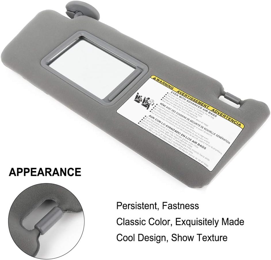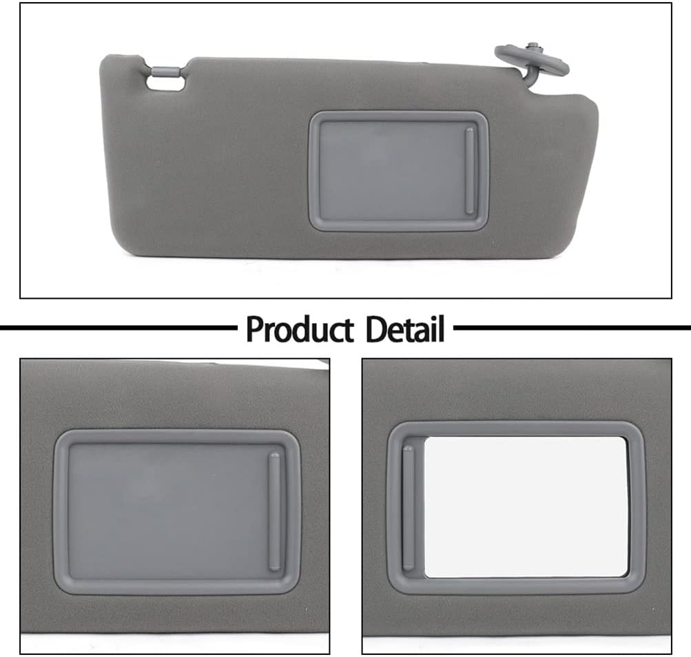 About ECCPP Sun Visor Assembly for Car(1)Type: Car Sun Visor(2)Color: Gray(3)Installation Position on Automobile: Left and Right sides(4)APPLICABLE MODELS:2005-2015 for Toyota for Tacoma Base Crew Cab Pickup 4-Door 2.7L2005-2015 for Toyota for Tacoma Base Crew Cab Pickup 4-Door 4.0L2005 for Toyota for Tacoma Base Extended Cab Pickup 3-Door 2.7L 4.0L2006-2015 for Toyota for Tacoma Base Extended Cab Pickup 4-Door 2.7L 4.0L2006 for Toyota for Tacoma Base Prerunner Crew Cab Pickup 4-Door 4.0L2005-2014 for Toyota for Tacoma Base Standard Cab Pickup 2-Door 2.7L 4.0L2005-2015 for Toyota for Tacoma Pre Runner Crew Cab Pickup 4-Door 2.7L2005-2015 for Toyota for Tacoma Pre Runner Crew Cab Pickup 4-Door 4.0L2005 for Toyota for Tacoma Pre Runner Extended Cab Pickup 3-Door 2.7L2005 for Toyota for Tacoma Pre Runner Extended Cab Pickup 3-Door 4.0L2006-2015 for Toyota for Tacoma Pre Runner Extended Cab Pickup 4-Door 2.7L2006-2015 for Toyota for Tacoma Pre Runner Extended Cab Pickup 4-Door 4.0L2005-2010 for Toyota for Tacoma Pre Runner Standard Cab Pickup 2-Door 2.7L2005-2010 for Toyota for Tacoma Pre Runner Standard Cab Pickup 2-Door 4.0L2006-2009 for Toyota for Tacoma SR5 Prerunner Crew Cab Pickup 4-Door 4.0L2015 for Toyota for Tacoma TRD Pro Crew Cab Pickup 4-Door 4.0L2015 for Toyota for Tacoma TRD Pro Extended Cab Pickup 4-Door 4.0L2010-2015 for Toyota for Tacoma TRD Sport Crew Cab Pickup 4-Door 4.0L2006-2009 for Toyota for Tacoma TRD Sport Prerunner Crew Cab Pickup 4-Door 4.0L2005 for Toyota for Tacoma X-Runner Extended Cab Pickup 3-Door 4.0L2006-2013 for Toyota for Tacoma X-Runner Extended Cab Pickup 4-Door 4.0L