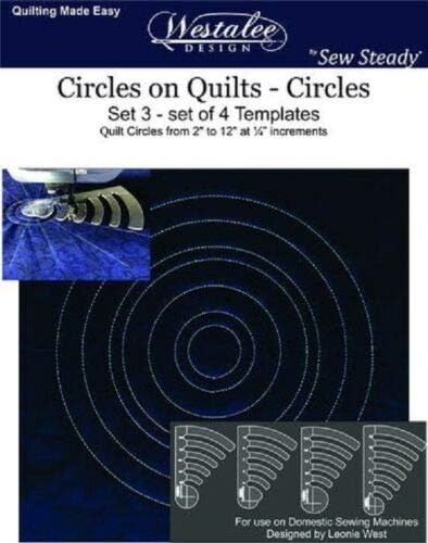 Circles on Quilts Templates are used for quilting concentric circles. These templates allow you to quilt circles at 1/2″ increments from 1″ – 12″. Can be used to make baptist fans. Using our single pin system, there is only 1 point of rotation, which reduces movement. For use with domestic machines when fitted with the Westalee Ruler Foot. Set includes: 2” to 12” at 1/2” increments (set of 2) & 2 1/2” to 11 1/2” at 1/2” increments (set of 2)