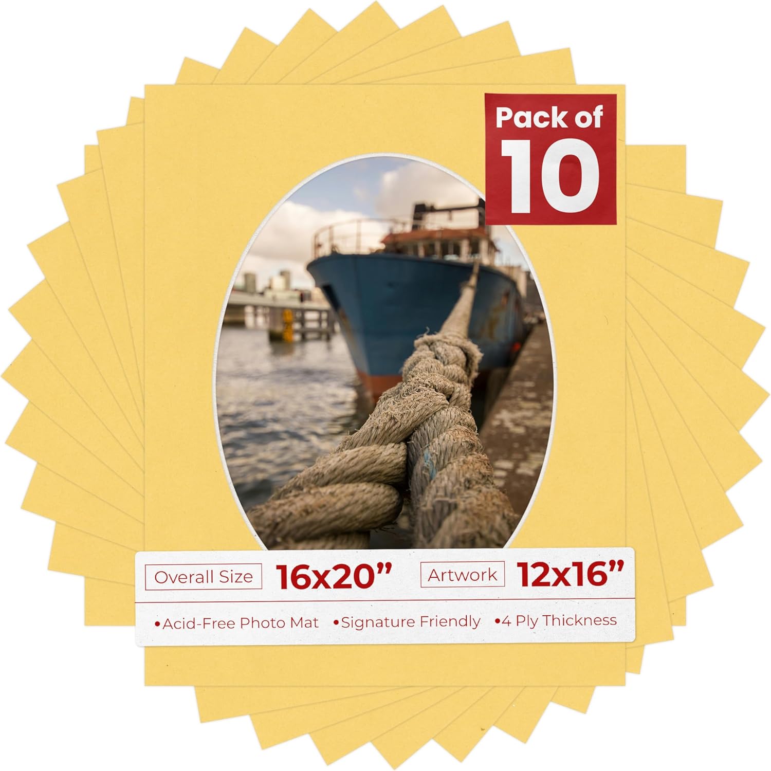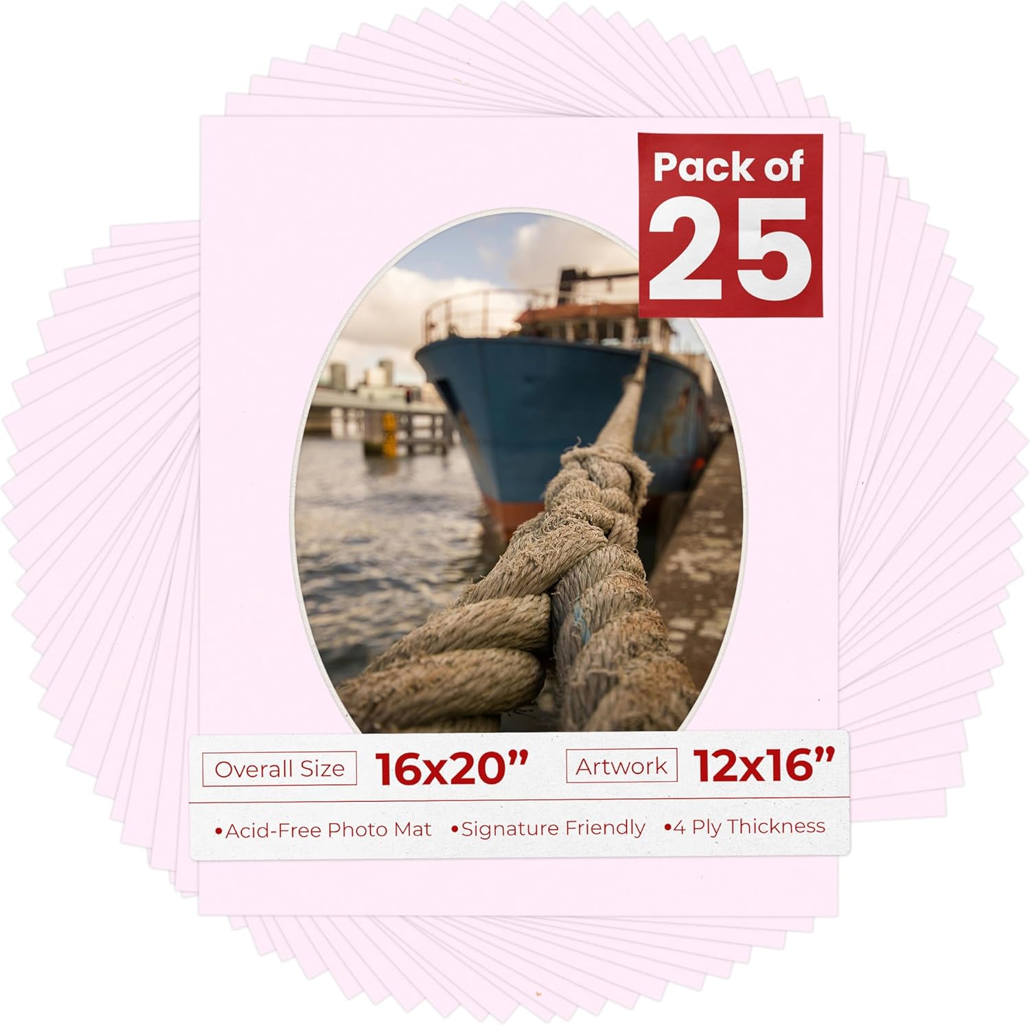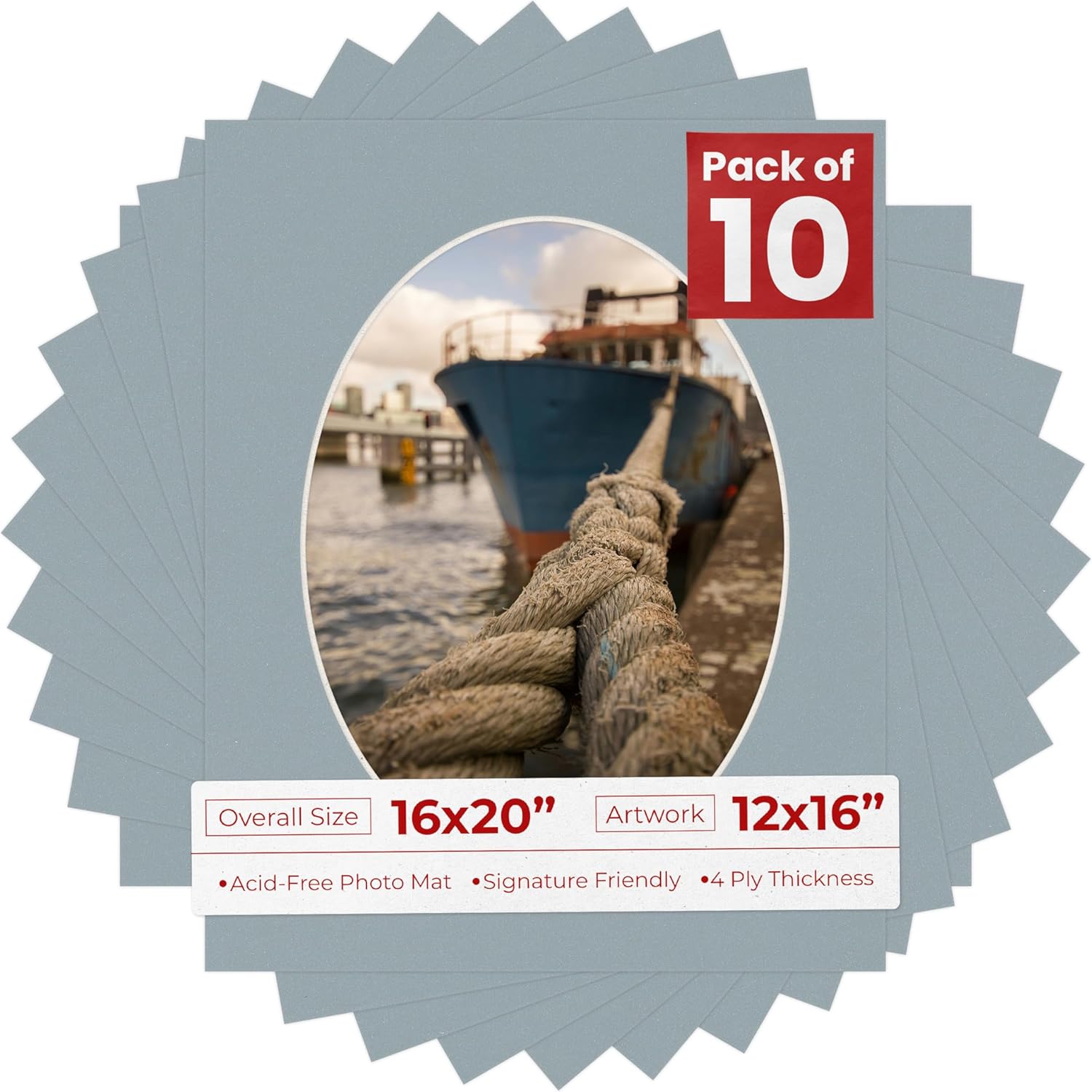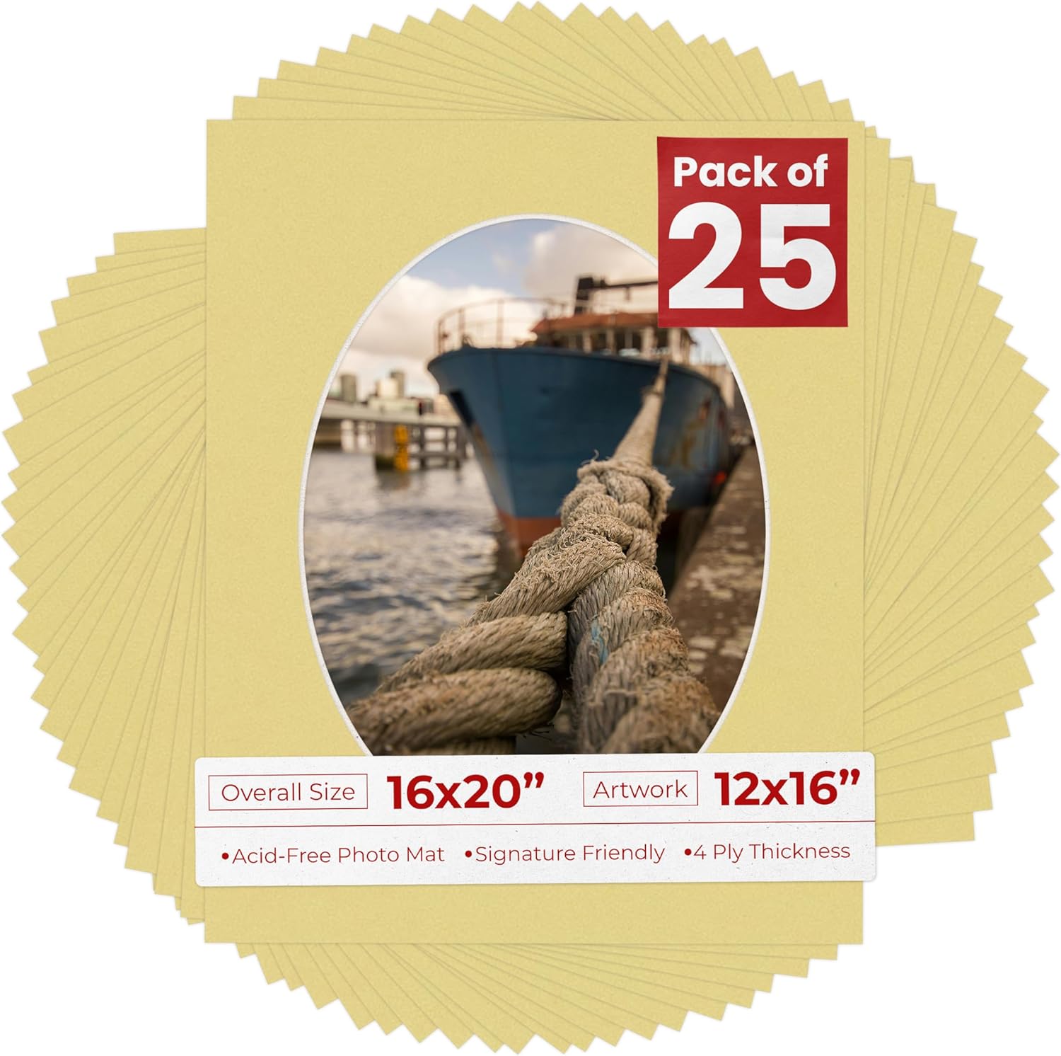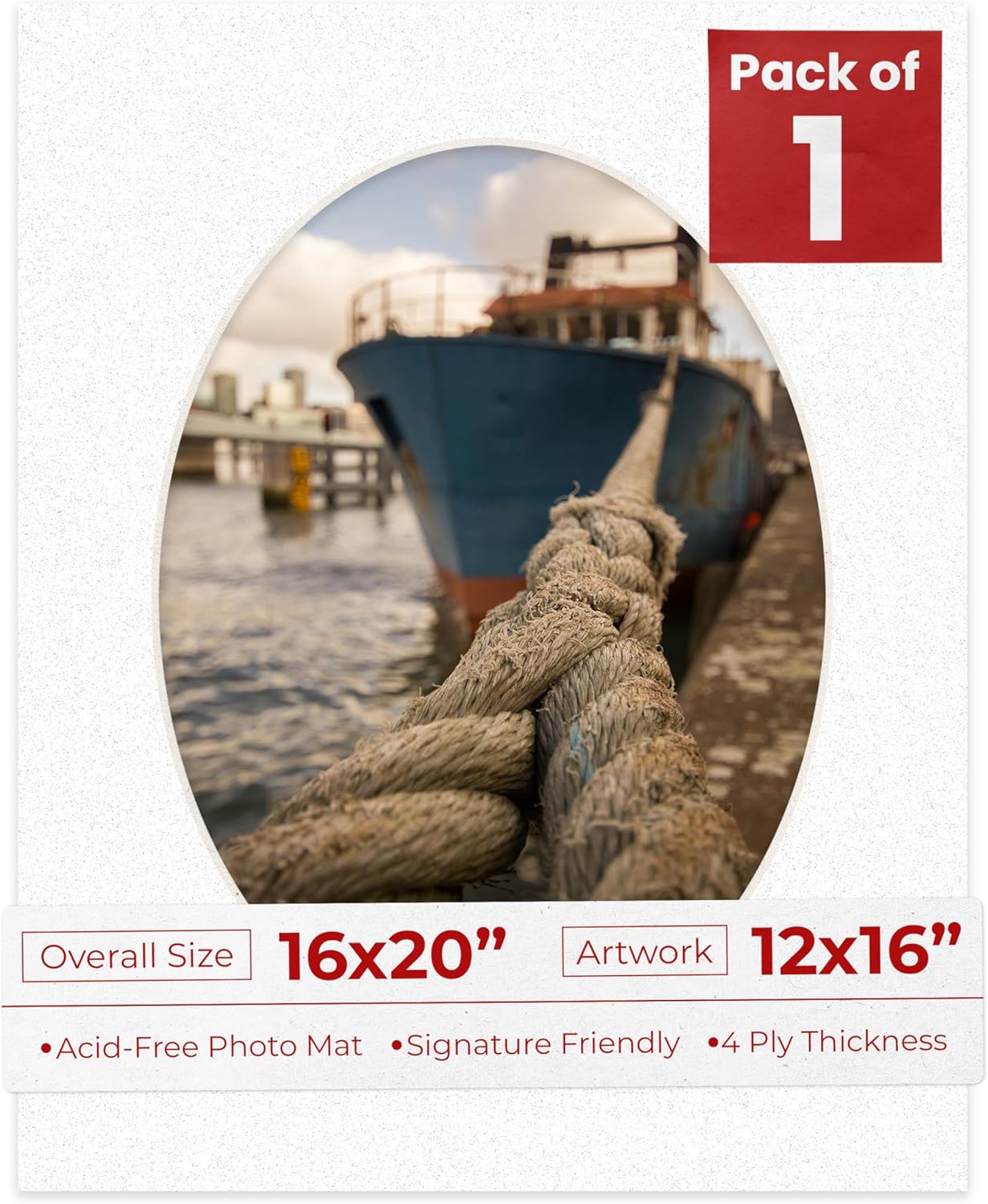 OVERALL SIZE (Made to fit a Frame Size Measuring) 16x20 Inches | Bevel Cut Oval Opening Size of 11.5x15.5 inches | For a Photo Measuring 12x16 Inches. THIS IS FOR 1 single matboard show kit with acid free backing & clear bag. White linen canvas PHOTO MAT with a oval bevel cut opening. A great way to change up the look of an existing frame with a new accent mat board. This matte also works great as a replacement for damaged, dirty, or faded matting in your old frames. PREMIUM QUALITY: Our precut photo matboards are acid free & precision cut with a 45 degree bevel by machine for perfect corners and NO over-cuts every single time. All of our precut matboards are MANUFACTURED BY POSTER PALOOZA IN THE USA.