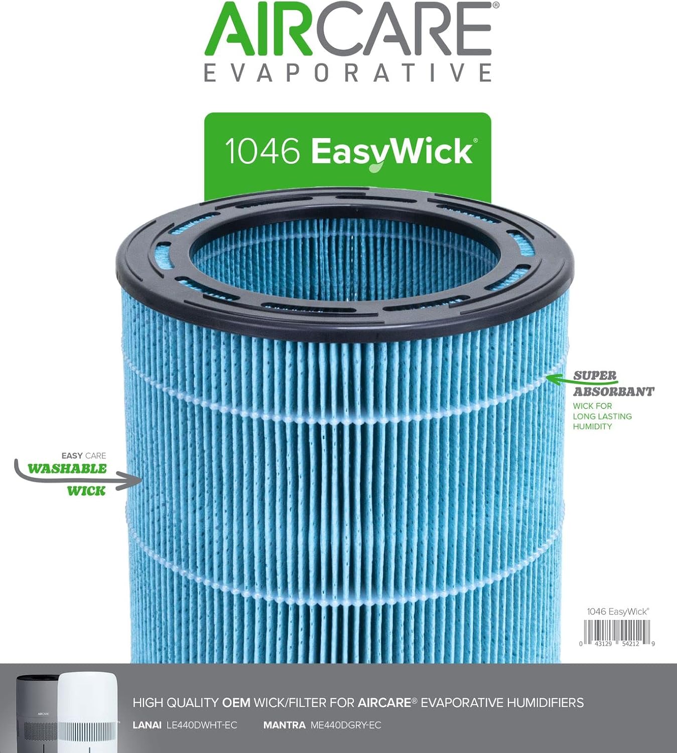 The new AIRCARE 1046 Easy Wick is an easy-to-install washable wick made for the AIRCARE Lanai and Mantra evaporative humidifiers.