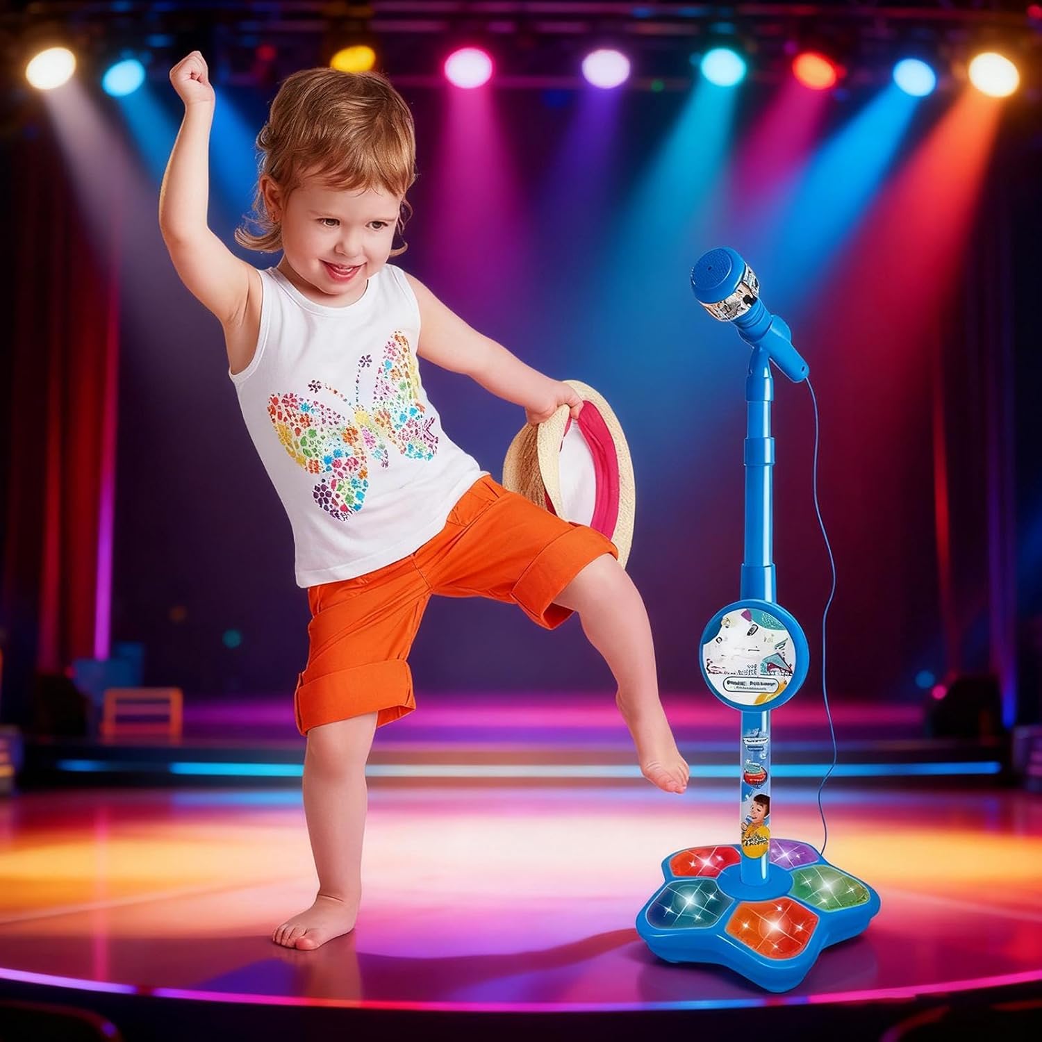 The microphone toy for kids is a versatile and portable device designed to enhance creativity and fun for kids and teenagers. Equipped with vibrant LEDs, this microphone creates an immersive atmosphere perfect for singing, recording podcasts, or streaming activities. The built-in speaker delivers clear sound, making it ideal for parties, studio games or family gatherings. Whether used as a birthday or Christmas gift, this toy microphone inspires imaginative play and strengthens confidence in young performers. Its lightweight design ensures easy portability, allowing kids to take it anywhere for entertainment during travel. Suitable for various occasions, this toy combines fun and functionality while cultivating a love of music and performance in growing minds. Specification Product name: kids microphone List Children's microphone with stand *1 Note: 1. Due to lighting effects and viewing angles, there may be color differences in the product. 2. Due to manual measurement, there may be errors in the size of the product, please understand.
