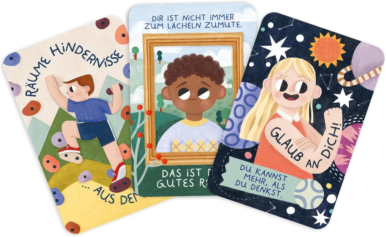 Discover 30 empowering messages that motivate you day after day. Did you know that there are phrases that really seem inspiring? In this set, 30 illustrated cards provide positive statements that help you become more confident. In addition, the accompanying booklet offers various suggestions on how you can explore these statements and behaviors together as a family.