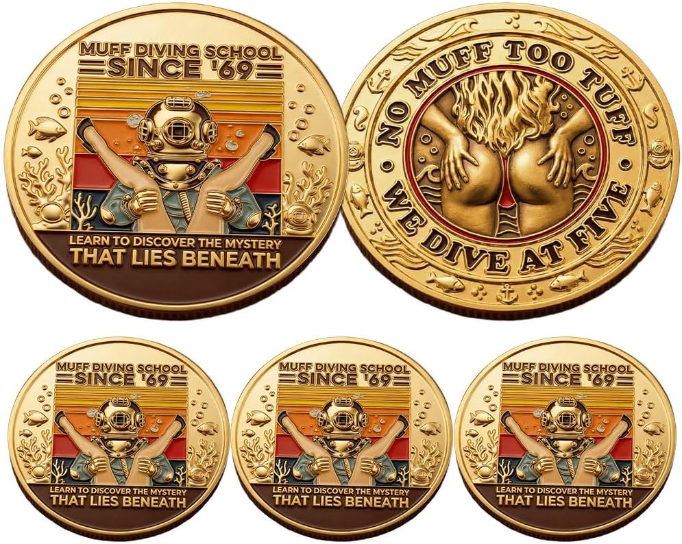 🎁 Perfect For: Gag gifts & bachelor parties 🎉 Adult humor lovers 😜 Challenge coin collectors Friends with a mischievous sense of humor Desk display, bar display, or man-cave décor 🍺🦈 ⭐ Why This Coin Stands Out ✨ Hilarious and unforgettable ✨ Retro-nautical theme with bold flair ✨ Perfect balance of cheeky and classy ✨ Makes people laugh instantly 🤣 100% Imported Brand New High Quality Specifications: Product name:Muff Diving School – Since ’69 Commemorative Challenge Coin Material: Metal Package contents include: 1/3/5/10 * Muff Diving School – Since ’69 Commemorative Challenge Coin Note : 1,Manual measurement, please forgive me if there is any error. 2,Due to different monitors and different lighting, the picture may not show the actual color of the item. Thank you for your understanding. 3,Your 100% satisfaction with the shopping experience is our real goal. If you have any confusion before or after ordering, please don't be stingy with your email. Let us know and we will reply within 12 hours and solve the problem for you.
