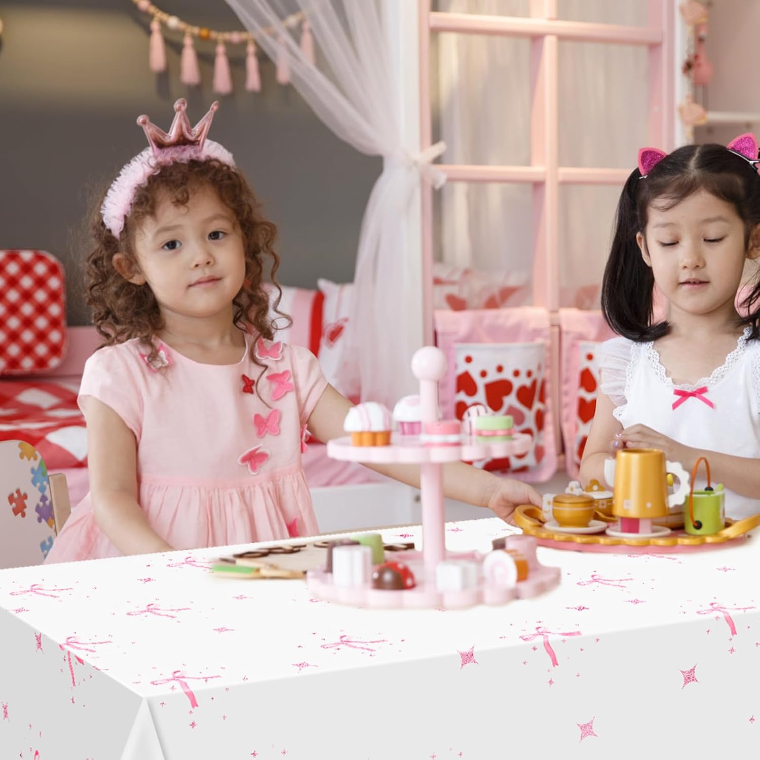 Specification: Color: pink,white Material: PE material Product Size: 2.74x1.37m/9x4.5ft Package details: 2 x coquette pink bow tablecloths Note: Due to manual measurement, the size and weight may have a certain error. Due to the difference between different monitors, there may be a slight color difference existed.