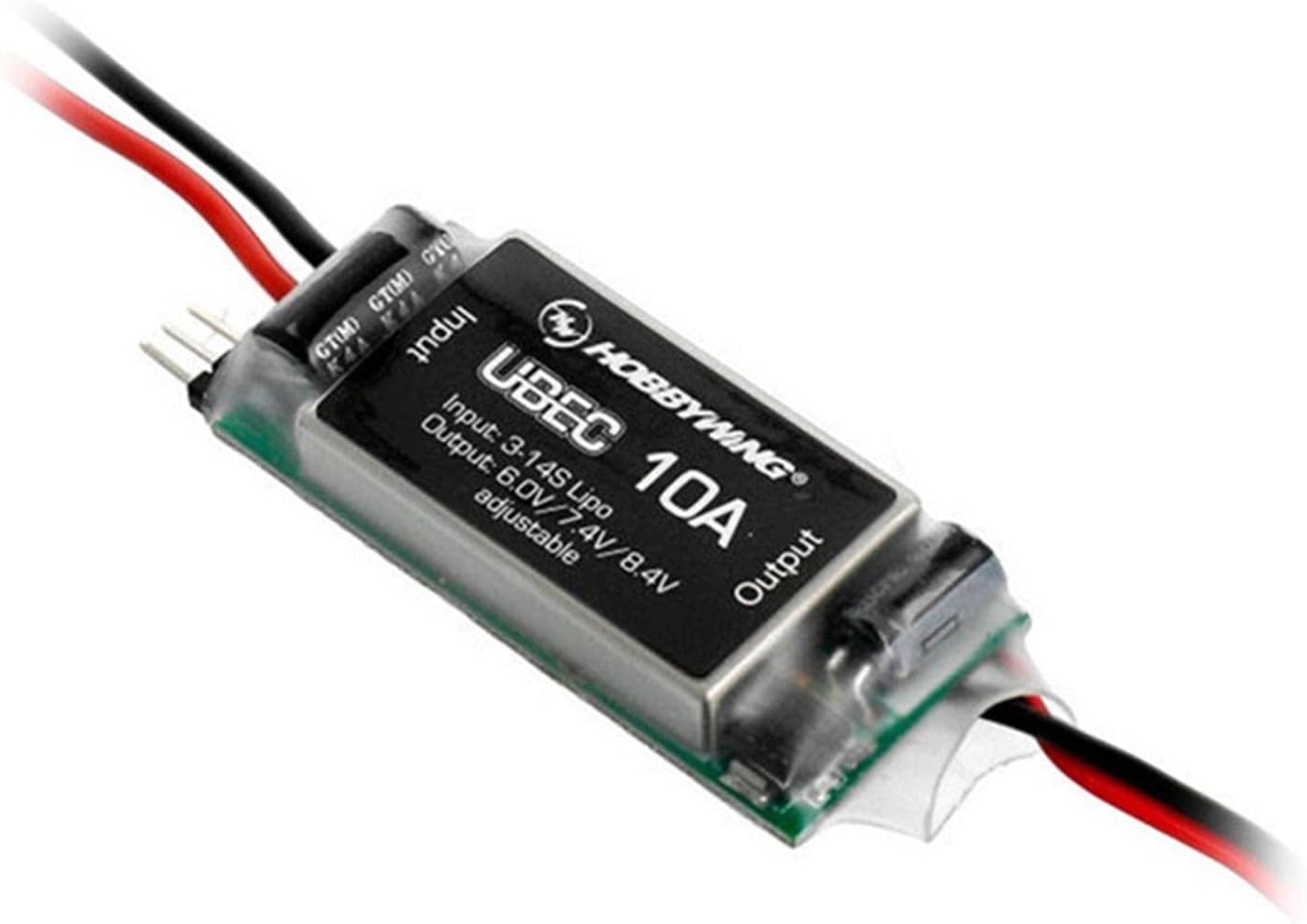 Features:The UBEC uses DC-DC voltage regulator chip with a conversion efficiency of over 90%.The UBEC can obtain a DC voltage suitable for the receiver and other equipment from the 3-14S Lithium-ion battery, and provide a stable output current of 10A.The output voltage of the UBEC is adjustable in three levels (6.0V/7.4 V/8.4V).The use of steering gear and electrical equipment that meets various voltage specifications. At the same time, it has over-current protection, output short-circuit protection, and over-heat protection. safe and stableSpecifications:Model: UBEC 10AInput Voltage: 3-14S LipoOutput voltage: 6.0V/7.4 V/8.4V (3 options adjustable)Output current: continuous 10A, instantaneous 25ASize: 55*25*12mmWeight: 35gPackage include:1* 10A ubec