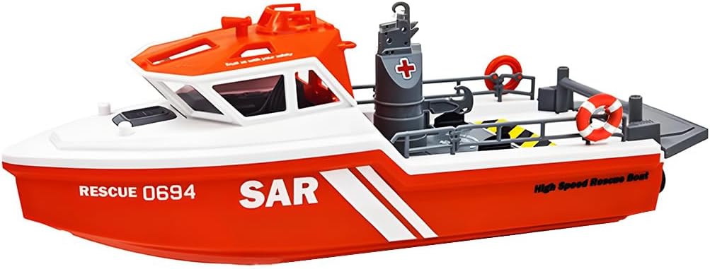 .Material: ABS+electronic components.Color: Black and red.Sailing Speed: 8km/h.Product Battery: 3.7V 600mAh lithium battery.Charger: USB charging.Battery Life: 18 minutes.Charging Time: about 90 minutes.Remote Control Battery: AA battery*2 (not included).Frequency: 2.4GHz.Remote Control Distance: about 50 meters.Applicable Venues: Swimming pools, rivers, lakes, offshore waters, etc..Product Functions: Forward, backward, turn left, turn right.Product Weight: 300g.Package Weight: 800g.Product Dimensions: 32 x 10.5 x 10cm.Package Dimensions: 35.5 x 25 x 9.5cm.Packing: Graphic Carton.Ages: 16+Package Including.RC rescue boat Model *1.Remote control *1.usb charging cable *1. Screwdriver *1. Manual *1. Decorative parts *2