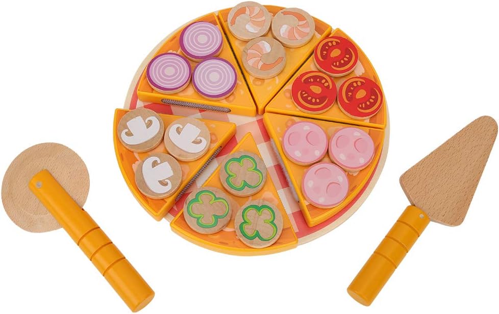 1. Variety of colors and accessories, let babies perceive colors and recognize things when playing. 2. The baby imitates the adult's movements, experiences the real sense of cutting food, improves the baby's hands‑on ability, and exercises the refined hand movements. 3. Knives specially designed for babies, with slick rounded corners and no burrs, safe to use. 4. 6 kinds of material slice, rich pattern, color paint, baby can know about the pizza making process. 5. Made of wood material, safe and eco‑friendly, firm and durable. Spec: Condition: 100% Brand New Item Type: Simulation Pizza Toy Material: Wood Suitable Age: 36 months and above Maintenance: Wipe with semi-wet wipes Size: As Shown in the Pictures Package List: 1 x Chassis 1 x Pizza Knife 6 x Pizza 18 x Material Slice 1 x Scraper Knife
