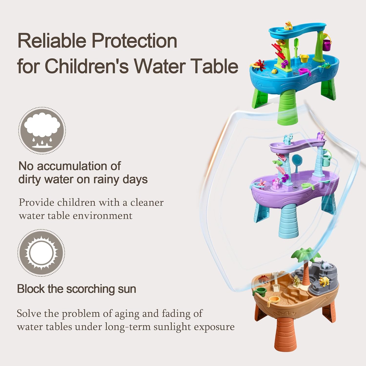 The size of this round children's water table cover is 39 "Wx22" Dx33 "H, and the size of the square children's water table cover is 34" Dx20 "H. Step 2 water table toys can be used for outdoor water game table toys, oval sand tables, Little Tikes and other popular brands of water tables on the 2nd floor, as well as Step 2 showerhead splash pool water tables. Please carefully measure the size of your child's water table before purchasing