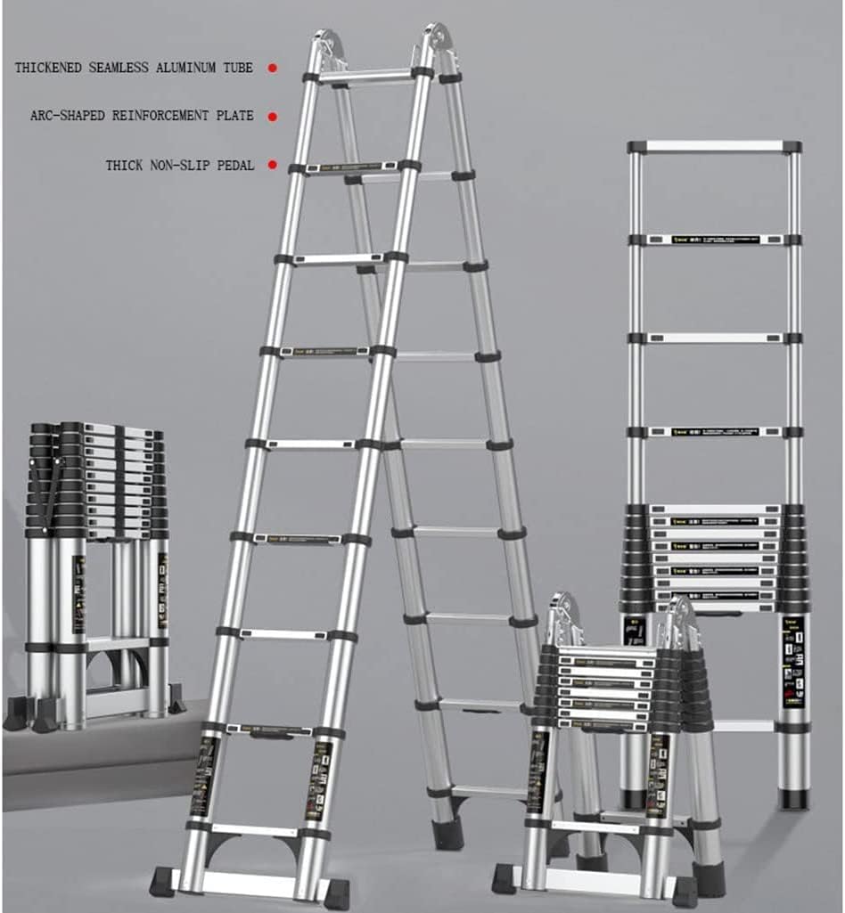 Telescoping Ladder, Features: High quality foldable telescopic style ladder. Foldable design,convenient to use and easy to carry around anti-slip widened pedal,extra big foot and safety handrail make climing more confidence Easily stored in everywhere when ladder is closed. Lightweight yet and compact for easy storage and transportation The ladder comes with high quality rubber feet for extra stability and grip and stable locking between two neighboring steps to avoid bumping and friction The ladder is highly versatile and can be used for many tasks,no matter at home or work,which is a good helper for life Telescoping Ladder,