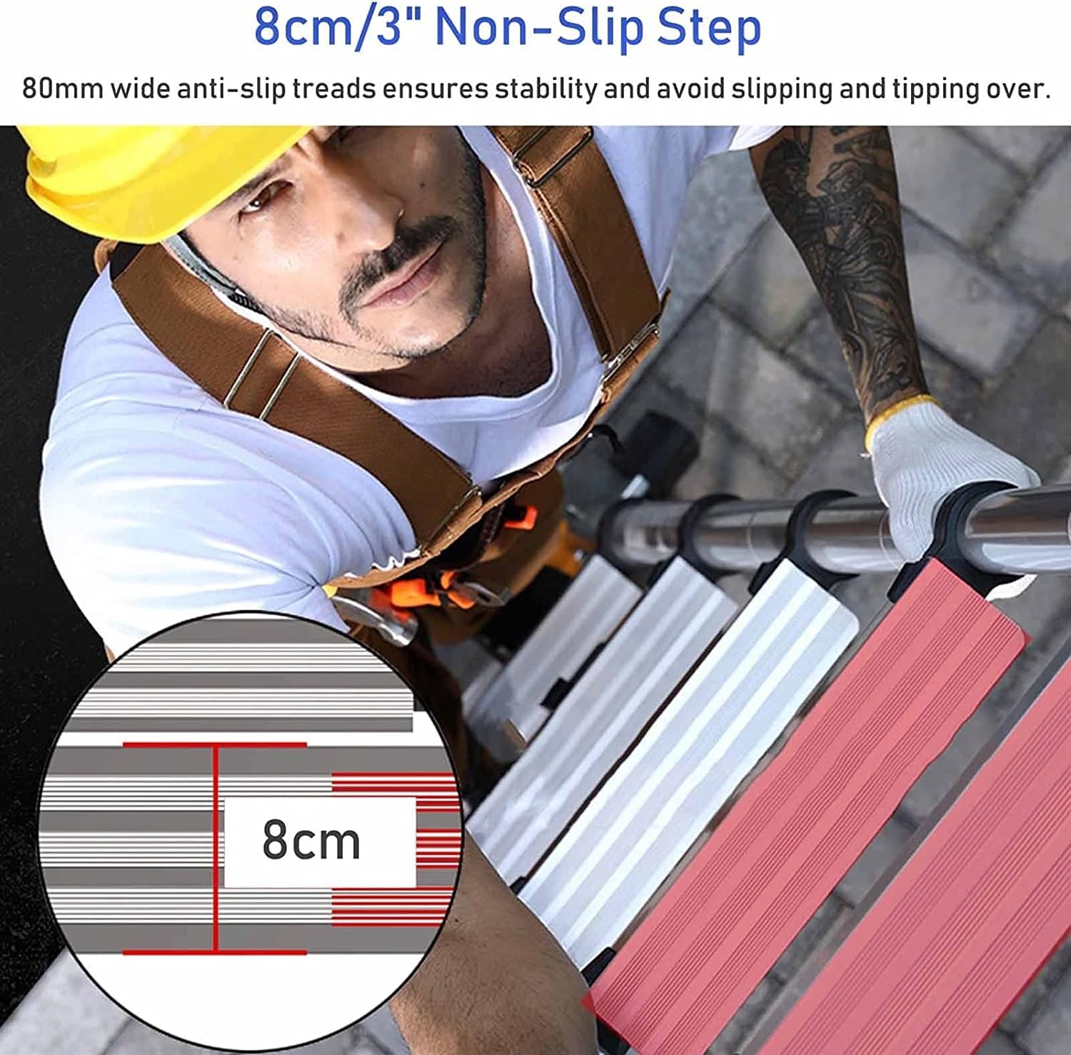 Hi! Dear friend, thank you for visiting store, wish you a happy shopping! Multi-purpose aluminum ladders,household ladders,folding ladders and telescoping ladders,we believe that safe ladders are critical for home and office use. Specification Material: Aluminium alloy Step Width: 8cm/3.2" Unfolded Height: 2.7m/9FT, 3.5m/11.5FT, 3.9m/13FT, 4.7m/15.5FT, 5.1m/16.5FT, 5.5m/18FT, 5.9m/19.5FT, 6.3m/20.5FT, 7m/23FT Maximum user weight: 200kg/440lbs. Product benefits: Slow-descending system allows the ladder to be retracted safely and avoids finger pinch. Secure the ladder closed with the heavy-duty strap and buckle for convenient storage and transport. Our telescopic style ladder with foldable design,very convenient to use and feel free to carry around. Ideal for home,office,cargo,access to rooftops and large buildings.Great for painting the walls,change light bulbs,clean interior decoration and so on. Please Note: Do not place your hands or fingers between the steps to avoid squeezing when retracting; Ensure that the two step hooks are firmly locked on the ladder steps and climb again; Then tie the end of the rope to the lower rail before use. Note: Because of the manual measurement 1-3cm size error,take physical size must prevail. There is a slight difference between the image and the actual element caused by the brightness. Incorrect maintenance mode will seriously affect the appearance of the product and the useful life. If you have any further questions about our Ladder,please contact us first. We are happy to help you. I hope you have a wonderful life.