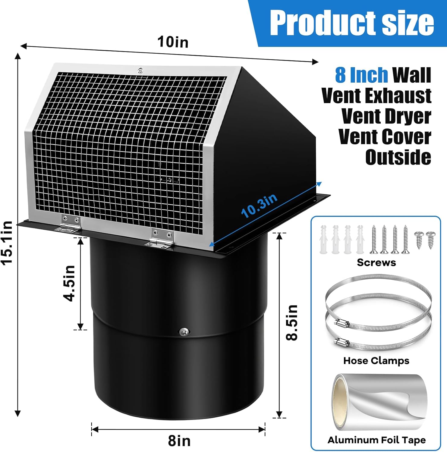 | Included Components | Aluminum Foil Tape, Damper, Mesh Screen, Screws, Wall Vent Cover |