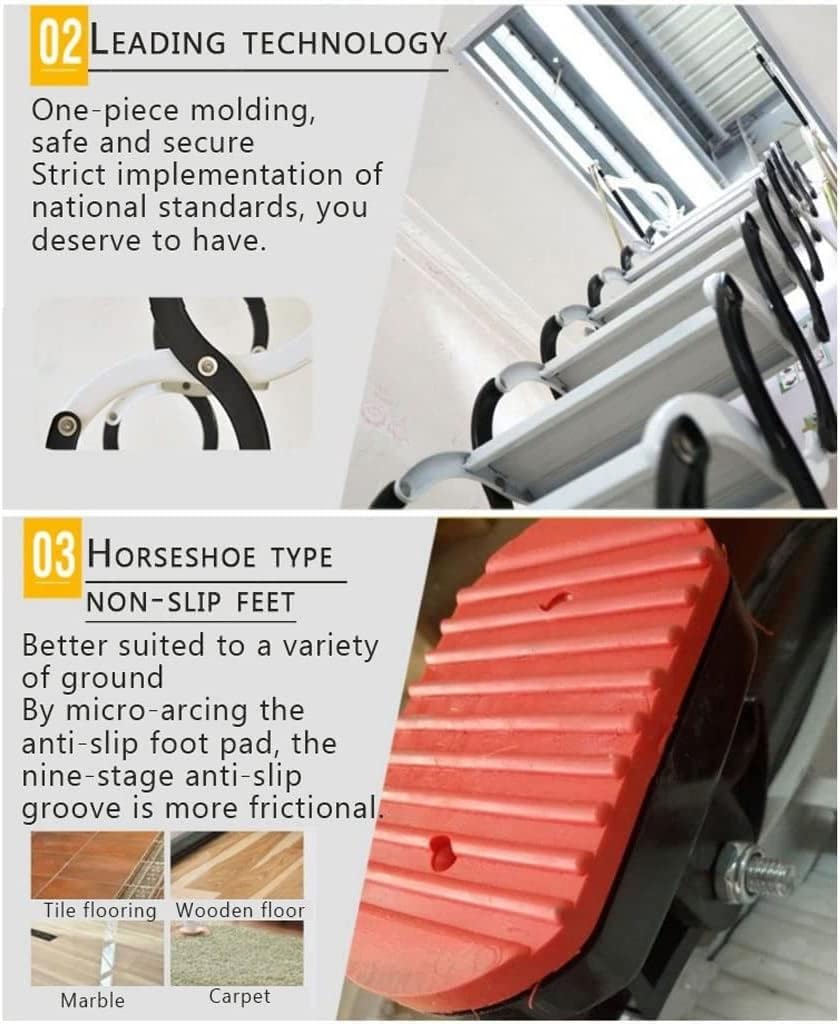 I believe this little extension ladder can bring great convenience to your life.telescoping ladder frame compact aluminum extension portable telescopic outdoor camper trips motorhome tool platform stabilizer bar one-button retraction collapsible w/non-slip feet multi-purpose home loft ladders attic light weight easy carry storage stepladder alloy foldingProduct Name: Multi Purpose LadderColor: White, Blue, Orange, BlackDefault Main Picture ColorLoad Capacity: 1100 PoundsMaterial Type: M1: Cold rolled steel. M2: Aluminum-magnesium alloy material. M3: Titanium-Magnesium Alloy Material.Applicable Height: 2-2.3m/80-92in,2.3-2.6m/92-104in,2.6-2.9m/104-116in,2.9-3.1m/116-124in,3.1-3.3m/124-132in,3.3-3.5m/132-140in,3.5-3.8m/140-152inSpecial Feature: Telescopic, Foldable, Safety, Adjustable Height, Sturdy, Durable*** NOTE ----- Do not exceed the telescoping ladder maximum total load.