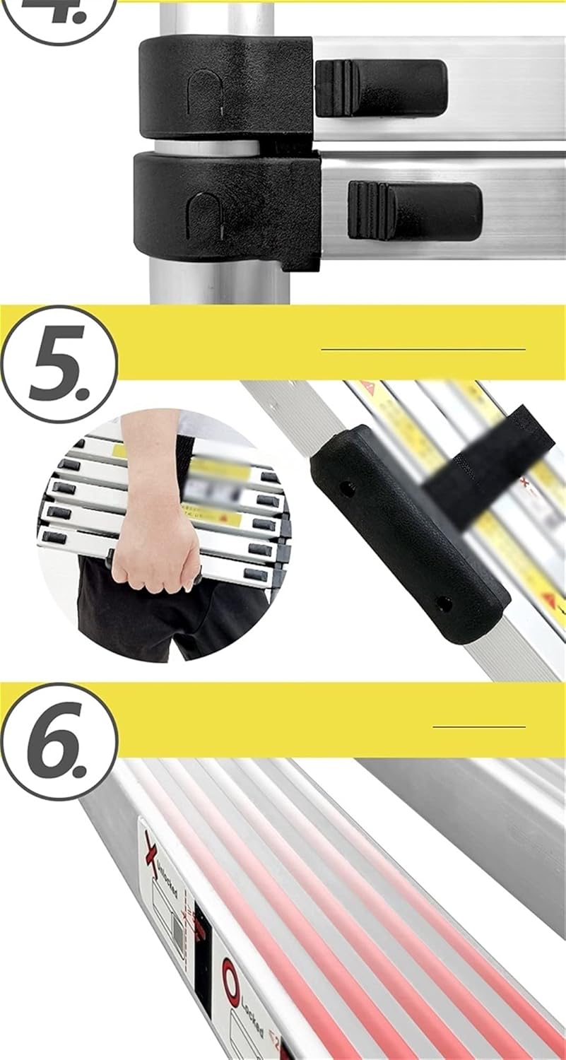 ➤Product Description The ladder is highly versatile and can be used for many tasks, no matter at home or work. Invaluable around the house and work place. Easily stored in everywhere when ladder is closed. ➤Specification: Material: Aluminum alloy Unfold Height: 1.5m , 1.9m , 2.1m , 2.3m , 2.7m , 3.1m , 3.5m , 3.9m , 4.3m , 4.5m , 4.7m , 5.1m , 5.5m , 5.9m , 6.3m Load: 150kg / 330lbs Package contents: Telescopic Ladder x 1 ➤【Note】 1.When you are closing the ladder, please do not place any parts of your body, including hands and fingers, between the rung. 2. If you want to use several steps as a short ladder, please open the steps from top and keep the bottom steps unextended. 3. When you close the ladder, please start from the bottom pedal. 4. Please allow 1-3cm error due to manual measurement. pls make sure you do not mind before you bid. 5. Due to the difference between different monitors, the picture may not reflect the actual color of the item. Thank you!