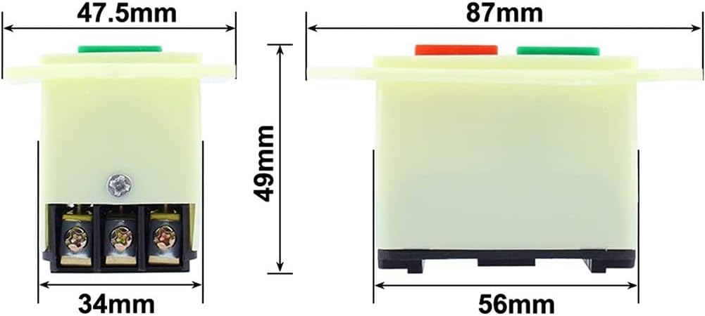 Product description Features: Made of material,LC3-5 LC3-10 Start Stop Button Switch On/Off 10A/220V 380V Bench Drill Grinder Cutting Machine Switch.The start button can be locked to prevent unauthorized use.The two-button design has a waterproof cover for starting and stopping the device.This switch provides for essential functionality for protecting you and your power tools in your professional or home workshop.They are suitable for most power tools on the market. Check the listed specifications to for ensure this switch is suitable for your application.Product parameters:Product name: Start-stop button switchModel: LC3-5, LC3-10 (optional)Voltage: 380VCurrent: 5A / 10ANumber of terminals: 6Overall size (approx): 8.9 x 4.9 x 4.6 cm/3.5 x 1.9 x 1.8 inches (L*W*H)Package Included:1 * Start stop button switchNote:1.The real color of the item may be slightly different from the pictures shown on website caused by many factors such as brightness of your monitor and light brightness.2.Please allow slight manual measurement deviation for the data. Manufacturer Contact Information Desiumite