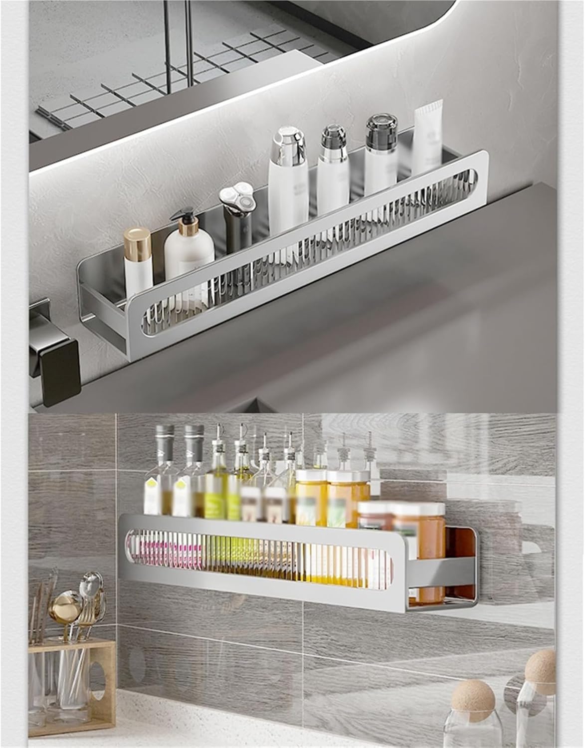 Wall Mounted Storage Shelves Organizer for Bathroom Wall Shelf Floating ShelvesProduct material: acrylic + carbon steelScope of application: kitchen, bathroom, balcony, etc.Product features: anti-rust/strong functionInstallation method: no drilling installationPackage Contents:1 x Bathroom ShelfOnly the above package content, other products are not included.Note:Light shooting and different displays may cause the color of the item in the picture a little different from the real thing.The measurement allowed error is +/- 1-3cm.