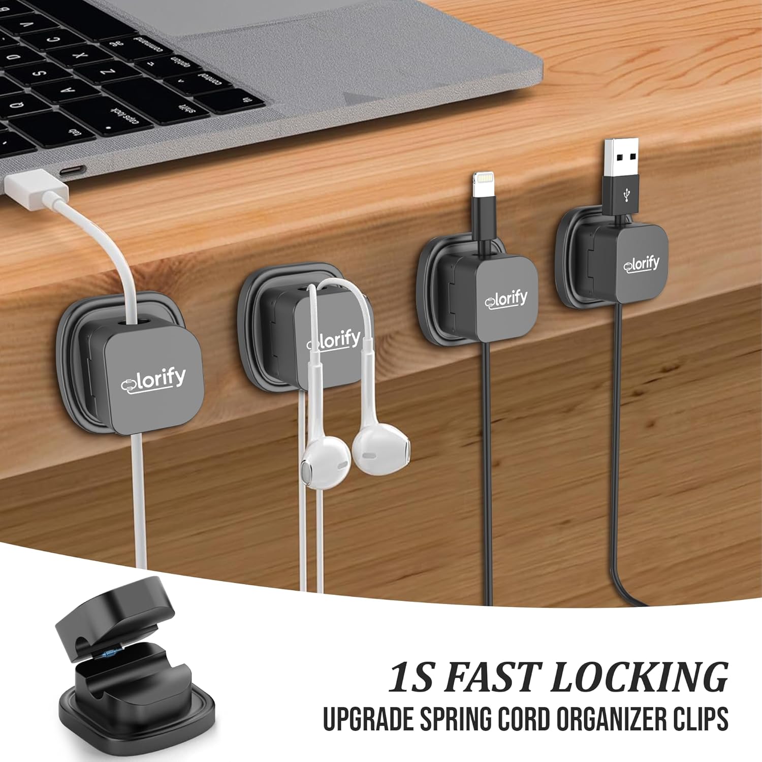 Rotatable Black Cable Clips Spring 8 Pack for Perfect Cord Management Tired of tangled cords and messy spaces? Our Rotatable Black Cable Clips 8 Pack are here to save the day! These sleek and durable power cord holders are designed to keep your cables organized, no matter where you are. Whether you're looking to tidy up your charger cord holder, manage cords at your nightstand, or keep your iphone cord charger holder in place, this pack is all you need. These versatile small plastic cord holders feature a unique rotatable design, making them easy to adjust and use for any setup. The rubber cord holder nightstand ensures a firm grip on your cords, and the screw cord holder offers extra security for a long lasting solution. For those who prefer a sticky cord holder cute, this set includes adhesive cord clips, perfect for securing cables without damage. Ideal for your nightstand cell phone cord holder or to prevent cables from slipping off your desk, these charging cord stoppers are perfect for any setting. Say goodbye to clutter with this cable clips 8 pack, including both adhesive cord clips and cord management night stand solutions. Keep your cables neat and ready to use with these innovative charging cord holders that can be easily applied to any surface.