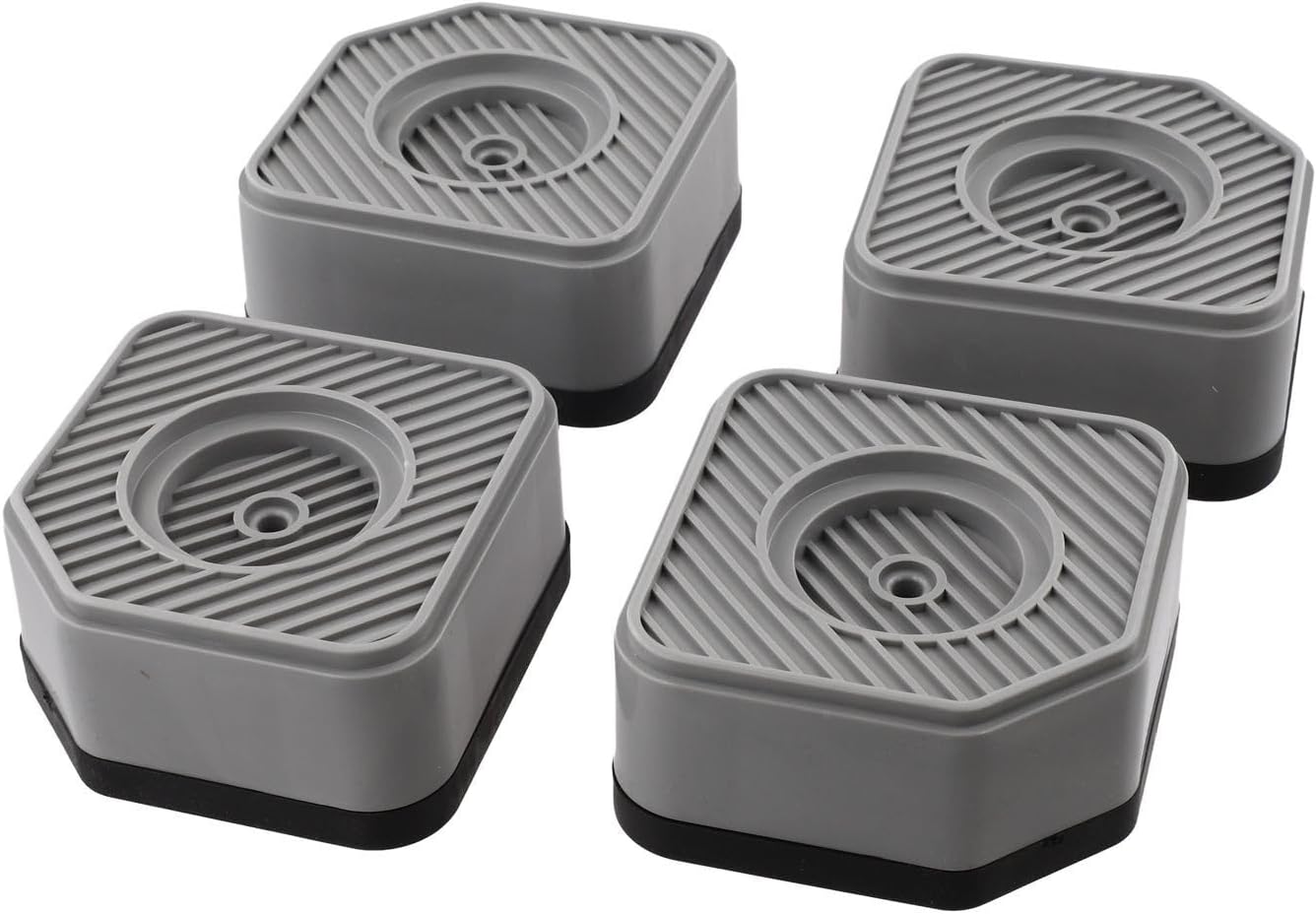 Features:Long-lasting Material:* High-strength plastic construction supports up to 4000 lbs without bending or warping.Anti-Slip Design:* Textured for surface to with rubber pads prevents sliding on all floor types while protecting floors.Smart L-Shaped Design:* Semi-circular shape fits all leg sizes—securing small legs on one side and large legs on both sides for ultimate stability.Space Optimization:* Elevates furniture for easier cleaning and extra storage space.for Versatile Application:* Perfect for beds, sofas, appliances (fridges/washers), and commercial use.Specifications:*Product Name:Height increasing pad*Material:Plastic*Size:9.5x9.5x9.5.cm*Color:GreyPackage Content:4 * Height increasing pad