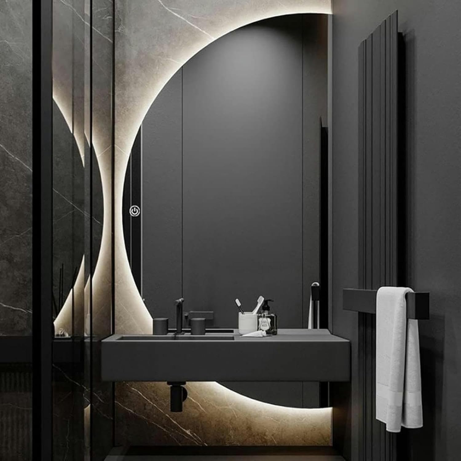 - Style: wall mirror with backlit lights.- Material: 5 mm high definition silver copper mirror with explosion -proof treatment.- Process: Silver mirror Last high definition copper intervension with fine rounded edge grinding- Available sizes: 50 cm, 60 cm, 70 cm, 80 cm, 36 inches, 40 inches.- Suitable for use in several spaces such as toilet, kitchen, living room, dining room, porch and business places.Tips:- For safety reasons, avoid hanging the mirror in wet walls, bubble walls or mottled desquamative walls.- Due to lighting and visualization differences, the color of the product can vary slightly from that of images.- There may be a difference of 1 to 2 cm in measures due to manual measurement.