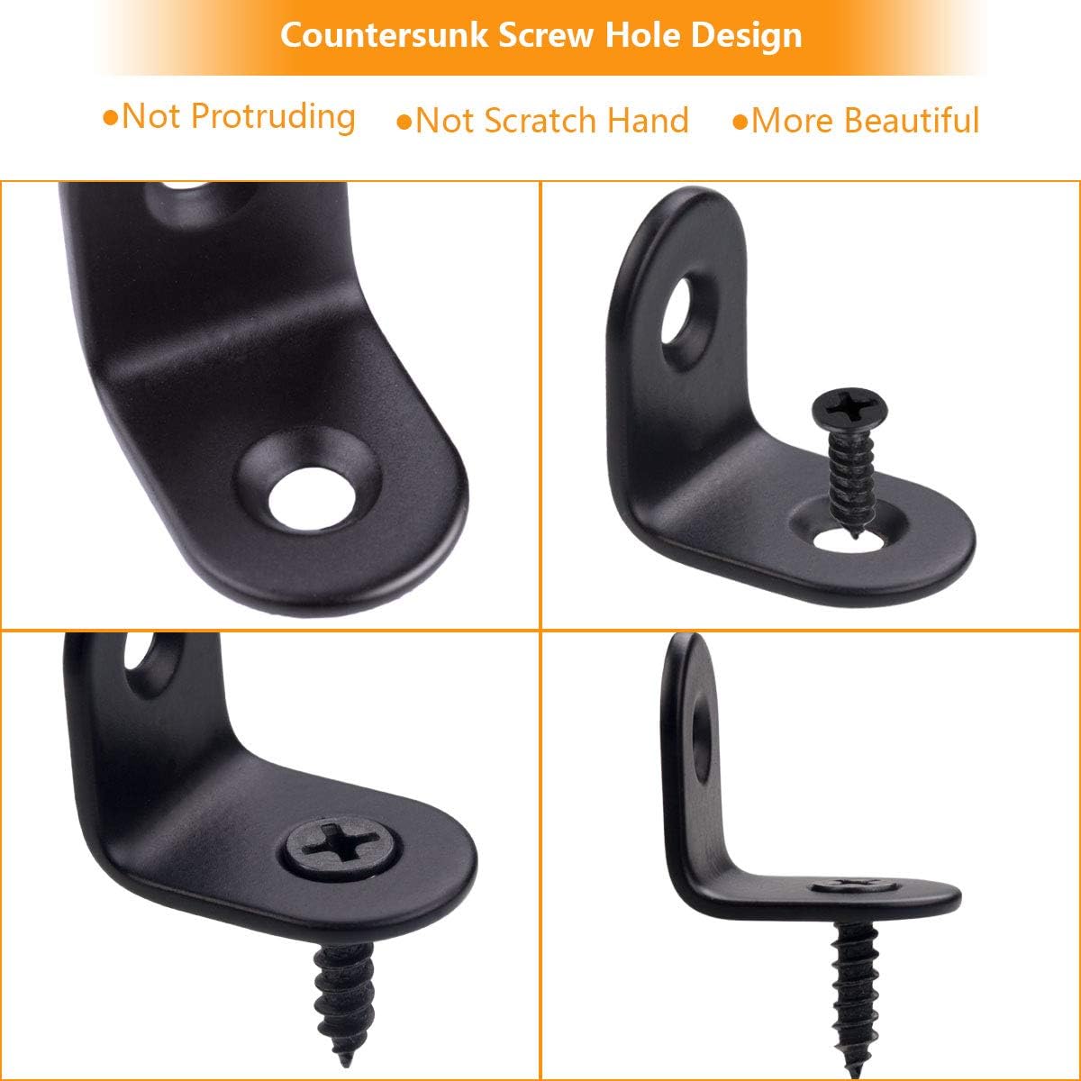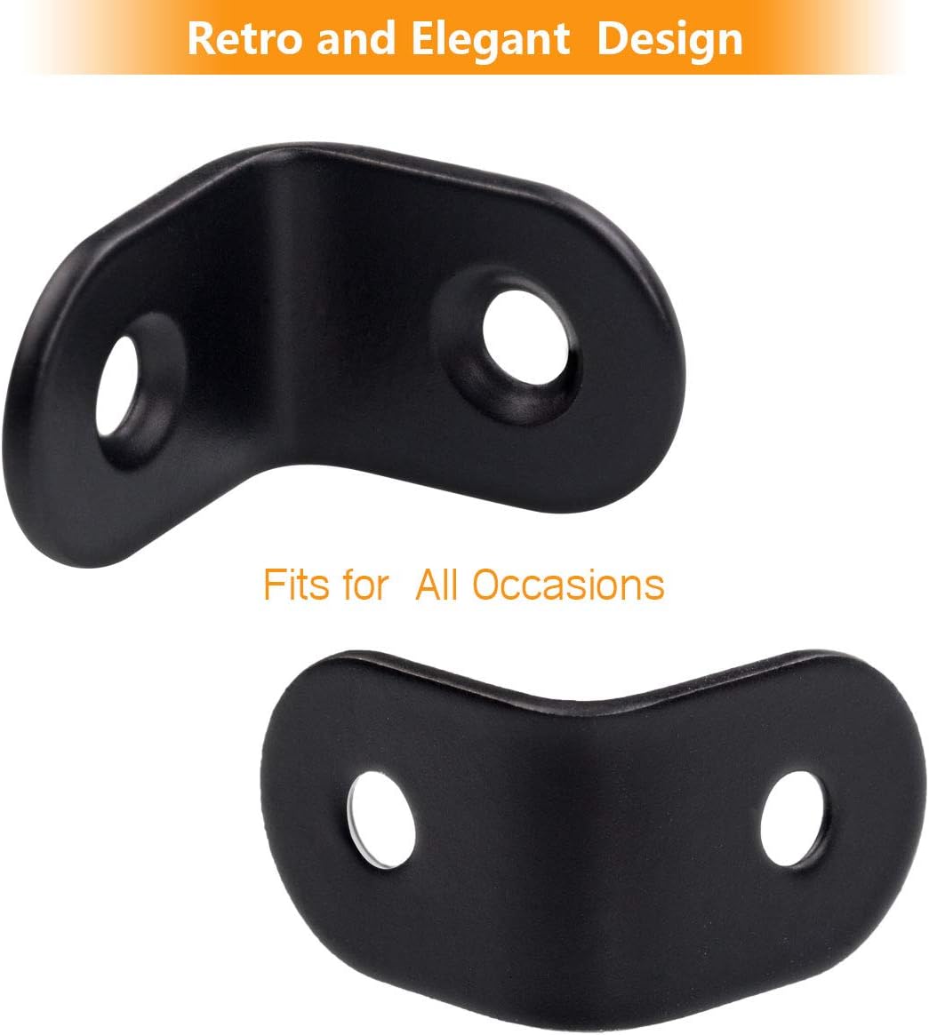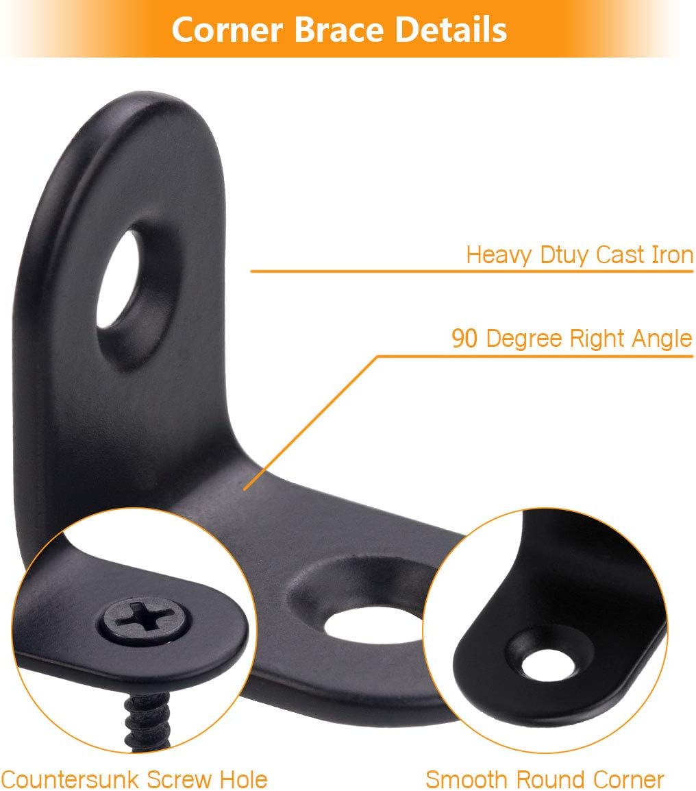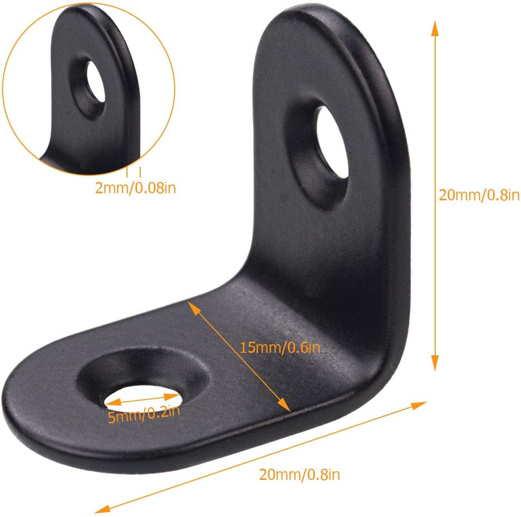 A+Selected 60 PCS black corner braces serve more as structural supports to strengthen corner joints against compressive failure. Specially designed with L shape, is an important fastener to make furniture parts stay firm. Brackets Specifications: SCast Ironize: 20 x 20 x 15 mm (L x H x W) / 0.8 x 0.8 x 0.6 inch Material: Cast Iron Thickness: 2MM/0.8 INCH Color: Black Appearance: Smooth Surface and Arc Design Number of Holes: 2 Holes Package: 60 PCS Right Angle Braces Note: Screws are not include Applications: Furniture Fixation, Perfect For Fastening Chair, Table, Window, Furniture, Dresser, Shelf And Drawer Brackets Features: -90 Degree angle braces, widely be used in furniture and hardware accessories -Made of high quality Cast Iron, durable and anti-rust - Once stamping forming and 2MM thickened steel plate, long service life -Countersunk screw holes design, aesthetic appearance and easy to install - With arc design, it won’t hurt your hand and it will be safer to use - As a corner connecter, perfect for fastening shelves, furniture and cabinet